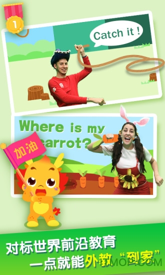 全新升级的3.0版本界面更加童趣活泼,新增AR互动功能,让孩子在虚拟与现实结合的场景中快乐学习。现在注册还可领取价值299元的试听大礼包,包含2节外教体验课和全套学习资料。