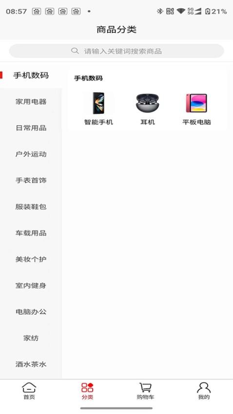点击分类选项,可浏览按商品类型划分的详细分类列表。每个大类下还有细分小类,支持多级筛选,帮助用户精准定位目标商品。