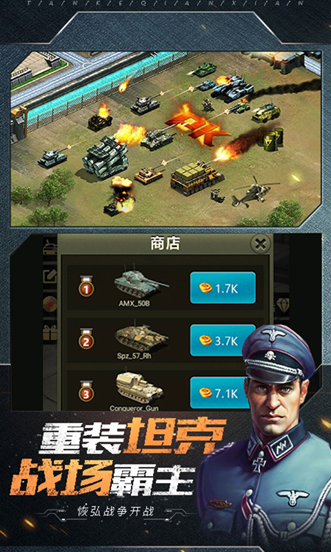 《狂潮》是一款以现代战争为背景的坦克射击手游,玩家将扮演指挥官的角色,集结坦克、装甲车、武装直升机等现代化武器,打造属于自己的战争军团。在这片广阔的战场上,你将体验到前所未有的陆空立体作战,通过精准操控和战术配合,完成一次次激烈的战斗挑战,最终横扫敌军,赢得战争的胜利。