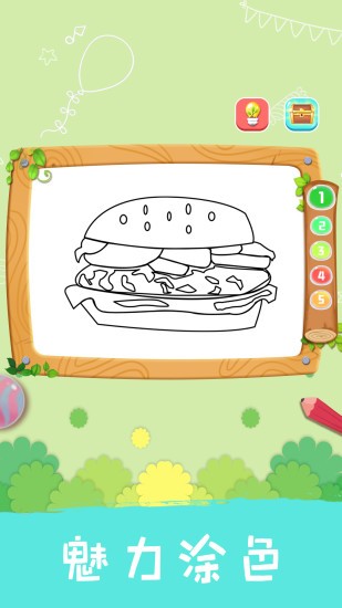 操作简单:大型画板,上色更加轻松容易。特别设计的儿童友好界面,按钮大小适中便于操作。
