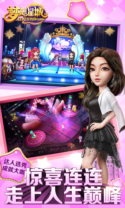 游戏采用独特的Q版3D美术风格,带来极致的视觉体验。玩家可以自由定制个性化头像,与近百位名人NPC互动交流。数百套潮流服饰随心搭配,超过300件精美家具任你布置。专业的评委系统为你的时尚品味打分,助你在星城社交圈崭露头角。每个细节都经过精心设计,让你沉浸在梦幻般的游戏世界中。