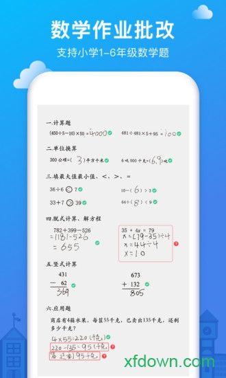 作业检查:数学作业轻轻一拍,一秒钟帮你找出错题,支持批改小学全年级数学作业。系统采用先进的图像识别技术,能准确识别手写体数字和运算符号。