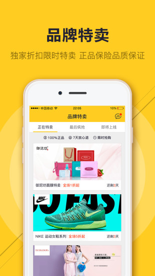 品牌特卖专场:与国际大牌、国内知名品牌深度合作,提供独家折扣限时特卖,正品保障,品质无忧。