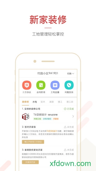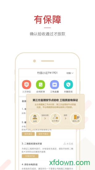 在线工地管理:通过齐家保三方协议、合同款项管理、节点验收记录、工地评价系统、问题投诉渠道和资金托管功能,让您轻松掌控整个装修过程;