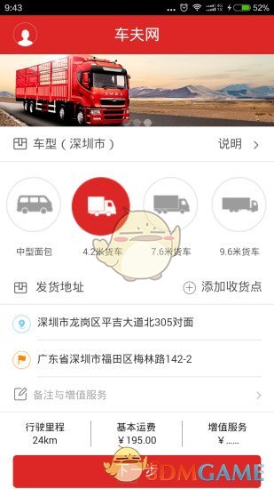 车型齐全,同时满足不同领域、不同需求的整车配送服务,从小型面包车到大型货车应有尽有;一键下单功能让用户只需简单操作就能快速完成订单,系统会自动匹配最近的车辆资源;明码实价的收费模式让用户清楚了解运输费用,避免隐性消费;智能调度系统通过算法优化配送路线,有效降低客户的运输成本;全程可视化GPS定位让用户可以实时追踪货物运输状态;50万内免费投保服务为用户提供安全保障;多终端支持让用户可以通过电脑或手机APP随时下单,满足各种运输需求。