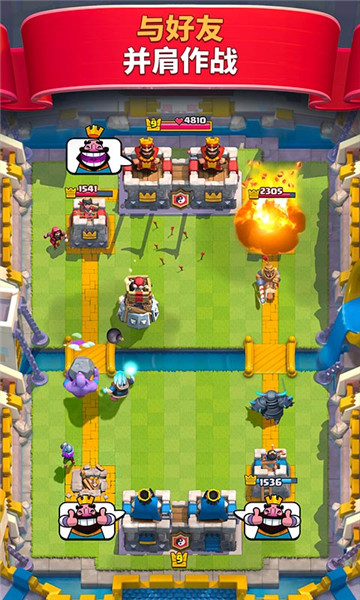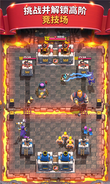 游戏支持实时对战,玩家可以与来自全球的对手一较高下,争夺奖杯和荣誉。通过赢得对战,玩家可以解锁宝箱,获得全新卡牌或升级现有卡牌,进一步提升战斗力。摧毁敌军塔楼不仅能赢得皇冠,还能开启史诗级的皇冠宝箱,获取稀有奖励。游戏中的卡牌系统非常丰富,玩家可以收集并升级来自《Clash Royale》的皇室成员以及数十种部队、法术和防御设施,打造属于自己的独特牌组。在不同的竞技场中,玩家可以挑战更高难度的对手,争夺排行榜的顶尖位置。部落系统让玩家能够与好友和部落成员分享卡牌,甚至进行私人对决,提升战斗技巧。此外,玩家还可以在TV Royale中观看高手的对决,学习顶级战术和策略。