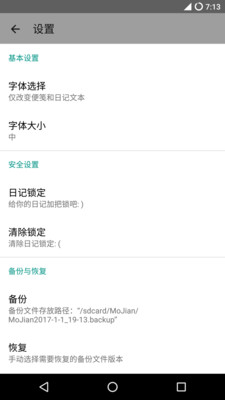 日记:生活中的快乐当然要和「墨笺」分享一下啦!当然在你不快乐的时候,「墨笺」也一样会陪伴在你身边的。新增心情指数统计功能,通过时间轴视图回顾情感历程。私密日记支持指纹加密,确保个人隐私安全无忧。