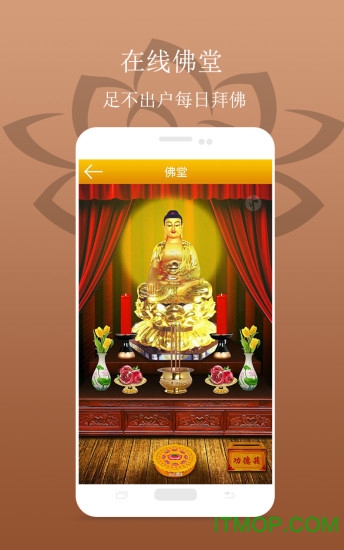 佛堂:3D虚拟佛堂让用户足不出户就能完成全套敬佛仪式,支持手机敬佛、跪拜、供奉香花烛果等传统礼仪;