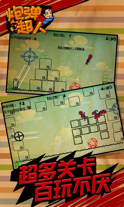 《炮弹超人》是一款充满创意与挑战的休闲益智游戏,将物理知识与趣味玩法完美结合。玩家将化身炸弹超人,在精心设计的关卡中运用重力、磁力等物理原理,通过精准计算炮弹轨迹击败敌人。游戏画面清新明快,操作简单易上手,但想要精通却需要动一番脑筋。90个难度递增的关卡带来持续挑战,每个关卡都暗藏独特的物理玄机,等待玩家发挥智慧逐一破解。