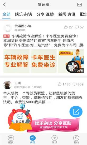 及时通讯:货运圈社区让司机可以随时交流经验,分享路况信息,还能结识同行好友。平台还提供免费通讯福利,降低沟通成本;