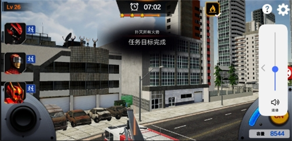 载具操作引入拟真物理反馈,湿滑路面会导致车辆打滑,急转弯可能造成设备脱落。高级关卡要求玩家操控云梯车展开多层救援,需同时协调角度调整与高度升降,完美操作可触发特写镜头。