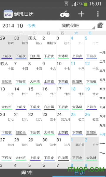 修改软件布局,操作更方便,新增快捷班次切换按钮;界面重做,简约实用,采用全新配色方案提升视觉体验;修复闹钟铃声设置问题,现在可以正常使用自定义铃声;增加数据备份功能,确保您的排班数据安全无忧;可将软件数据备份到本地SD卡,支持一键恢复功能;修改应用内多处细节,优化了滑动流畅度和响应速度;倒班日历手机版截图,新增多张高清界面截图展示应用特色。