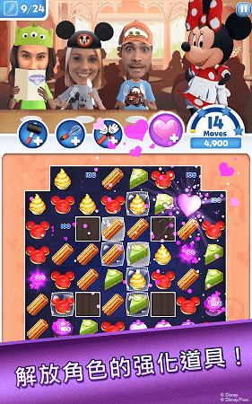 丰富形象的角色:汇集了迪士尼旗下数十位经典角色,每位角色都有独特的动画表现和语音台词,让玩家感受到原汁原味的迪士尼魅力。