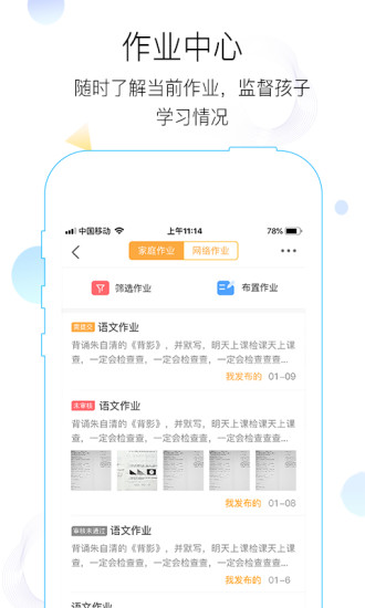 家庭作业:支持多媒体作业布置,包括语音、视频等格式,提供作业完成进度跟踪和智能提醒功能。