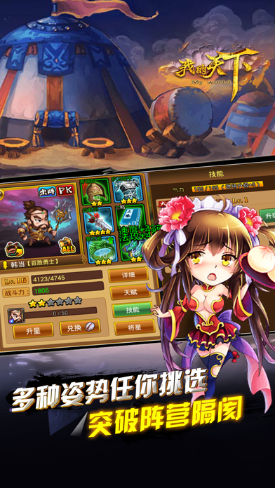 作为一款深度策略手游,我的天下华为版不仅注重战斗体验,更强调武将培养与阵容搭配。玩家需要通过招募、培养等方式壮大自己的武将阵容,每位武将都拥有独特的技能与成长路线。随着游戏进程的推进,玩家将逐步解锁更多玩法内容,体验从一方诸侯到统一天下的完整历程。