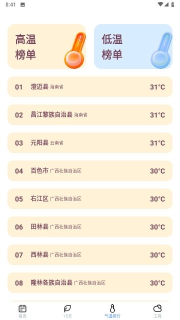 1、生活指数优化升级:新增反馈原因收集功能,让生活建议更精准贴心。