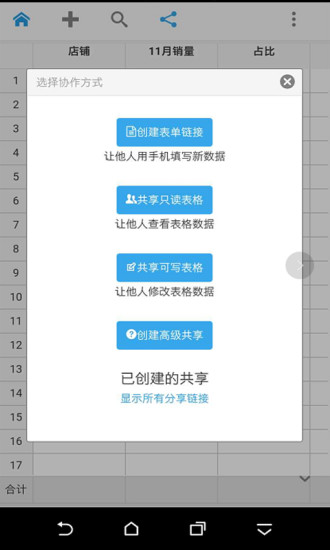 共享表格:用户可以将自己创建的表格线上共享给他人协作,数据同步更新,无需下载上传。共享时还可以设置不同的权限级别,确保数据安全的同时提升协作效率。