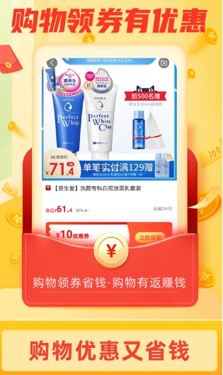 节日活动设计别出心裁,比如双11期间的"返利翻倍卡"、618的"幸运大转盘"等,将购物返利与游戏化元素完美融合。