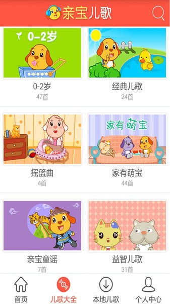 亲宝儿歌0-3岁是一款专为婴幼儿设计的早教启蒙应用,致力于为0-3岁的宝宝提供丰富多样的儿歌、动画和早教内容。这款应用收录了海量优秀的儿歌资源,包括经典童谣、原创歌曲和趣味动画,为宝宝打造一个充满欢乐与学习的成长环境。无论是哄睡、玩耍还是日常陪伴,亲宝儿歌都能成为宝爸宝妈们的得力助手,让育儿变得更轻松有趣。