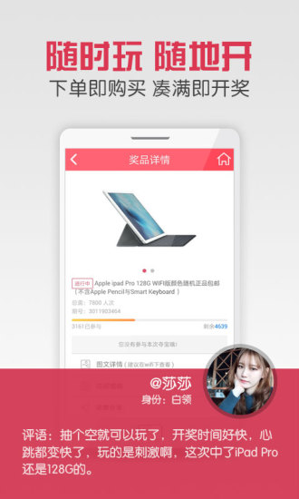 天天夺宝是国内领先的移动端分期众包购物平台,致力于为用户打造全新的购物体验。平台汇聚了当下最热门的潮流商品,从数码3C到美妆护肤应有尽有。在这里,您不仅能以超值价格获得心仪商品,还能享受与众不同的购物乐趣。我们采用创新的众包模式,让每位用户都有机会以极低成本实现购物梦想。平台还定期推出限时特惠活动,让您的夺宝之旅更加精彩纷呈。