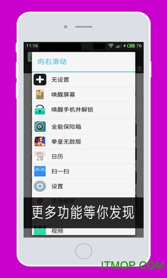 这款应用集便捷性、实用性和趣味性于一体,为用户带来全新的解锁体验。除了基础的双击唤醒功能外,还支持自定义唤醒区域,让操作更加符合个人习惯。用户可以添加快捷启动项,在解锁后直接进入常用应用,大大提升效率。独特的左右滑动快速启动程序功能,让操作更加行云流水。应用还提供多种解锁动画效果可选,满足不同用户的审美需求。未来还将持续更新更多实用功能,让手机使用体验不断升级。现在就下载体验,感受科技带来的便利!