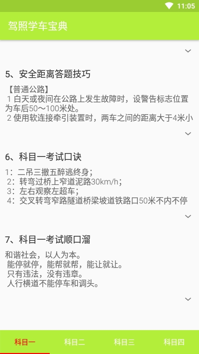 标志相关:驾车须知,交通标志、事故分析,非考题新手上路安全须知;新增AR实景识别功能,通过手机摄像头即可识别现实中的交通标志并获取详细解析。