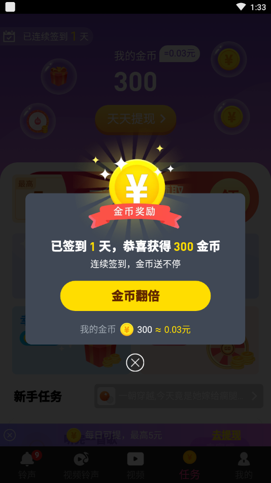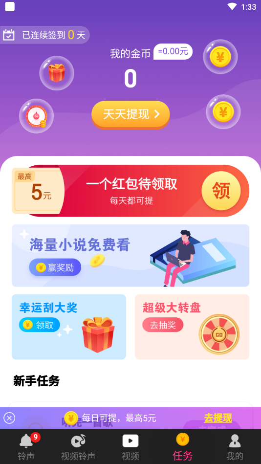 铃声汇是一款集铃声下载与赚钱功能于一体的创新应用,让用户在个性化手机体验的同时轻松赚取零花钱。平台拥有海量高清视频铃声资源,涵盖热门影视、流行音乐、搞笑音效等多种类型,满足不同用户的个性化需求。用户通过简单注册即可领取新人红包,参与每日任务、邀请好友等多种赚钱玩法,收益可直接提现到微信或支付宝。独特的激励机制让用户在享受趣味铃声的同时,实现"娱乐赚钱两不误"的完美体验。