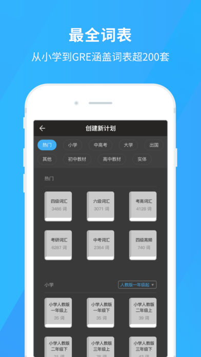 覆盖从小学到专业考试的各个阶段,包括小学/初高中/四六级/考研/托福/雅思/专四八/BEC/SAT/GRE/AT/托业/经济学人等,满足不同层次学习者的需求,让每个人都能找到适合自己的学习内容。