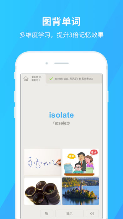作为一款现象级背单词APP,百词斩凭借其创新的学习方式和丰富的学习资源赢得了广大用户的喜爱。它不仅支持离线学习模式,还能智能同步学习进度,确保你在任何设备上都能无缝衔接学习。软件采用科学的记忆曲线算法,根据用户记忆规律智能安排复习时间,大幅提升记忆效率。几千万用户的选择证明了它的实用性和有效性,现在就来体验这款改变传统背单词方式的智能软件吧!