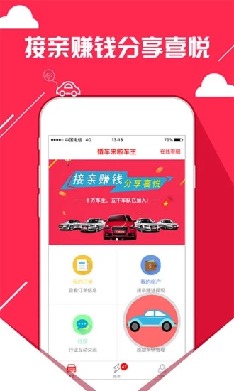 【便捷】无论是个人车主还是车队队长,都能轻松入驻平台。车辆信息在线审核流程简单快捷,车主可自由设定租金价格和接亲档期,订单信息清晰明了。平台承诺接亲结束后48小时内租金到账,确保资金流转高效。