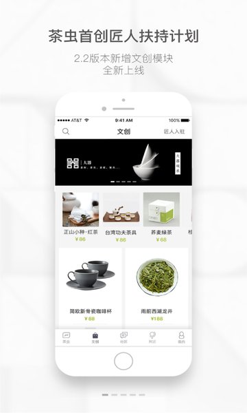 1.新增文创模块,独创"互联网+文化创意+资本"模式,打造匠人孵化平台,让传统茶文化焕发新生机;