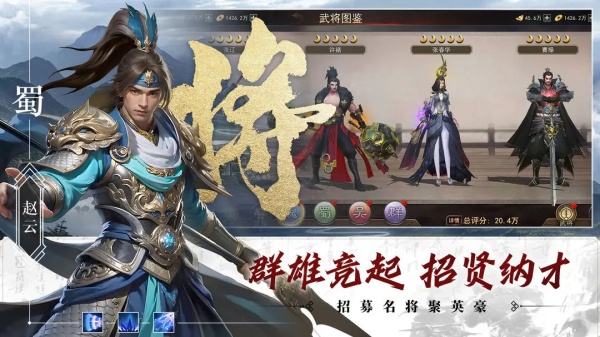 【武将招募】初期重点收集拥有组合技的武将,如"五子良将"同时上阵可激活特殊羁绊,大幅提升部队攻防属性。