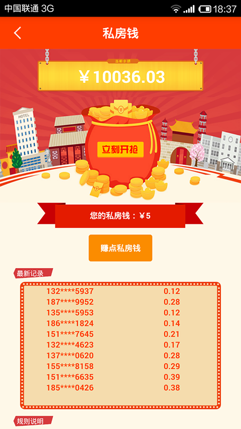 --平台定期举办丰富多彩的营销活动,包括每日摇红包、幸运抽手机、限时现金奖励等,参与就有机会获得惊喜福利。
