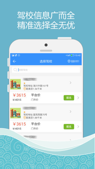 便捷报名:通过手机即可完成从浏览到报名的全流程操作,足不出户就能选择心仪的驾校和教练,一键完成报名缴费。