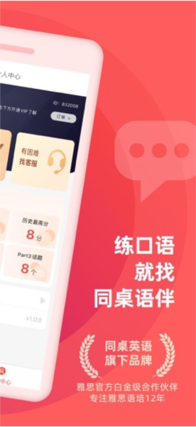 同桌语伴口语陪练是雅思备考者的理想选择,它将人工智能技术与专业语言教学完美结合,为用户提供高效、便捷、个性化的口语提升方案。无论你是希望突破口语瓶颈,还是想要系统性地提升英语表达能力,这款应用都能为你提供全方位的支持。立即下载体验,开启你的雅思口语提升之旅,让我们共同见证你在考场上的精彩表现!