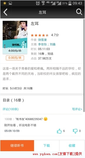 通勤伴侣:等女友、坐公车时的消遣利器,支持离线下载,无需担心流量问题,居家旅行都能畅听无忧。