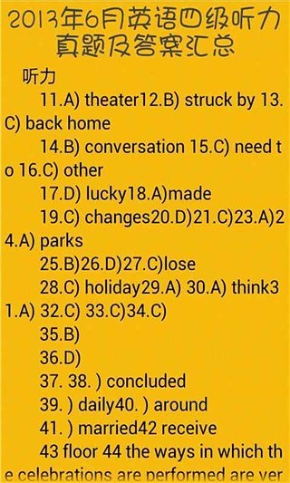 六级听力是由资深英语教育专家团队倾力打造的专业学习软件,专注于帮助大学生攻克六级听力难关。软件严格遵循最新六级考试大纲,完整收录历年真题和权威模拟题,确保学习内容的专业性和时效性。用户可以通过模拟考试功能体验逼真的考场氛围,系统会自动生成详细的成绩分析报告。每道题目都配有专业解析和完整听力原文,帮助用户深入理解考点。软件采用智能学习算法,能够根据用户的学习轨迹推荐最适合的练习内容,实现精准提分。无论是系统备考还是查漏补缺,六级听力都能提供全方位的支持。