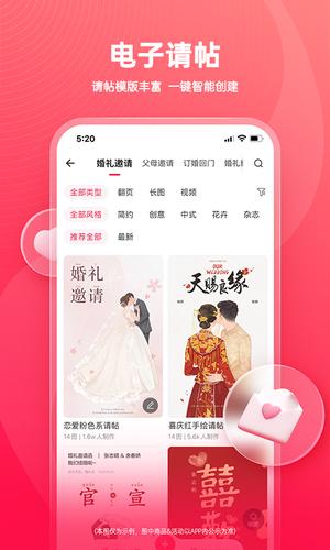 结婚工具:提供电子请帖、婚礼MV、一键试婚纱等实用工具,满足婚前准备和婚礼当天的各种需求场景。