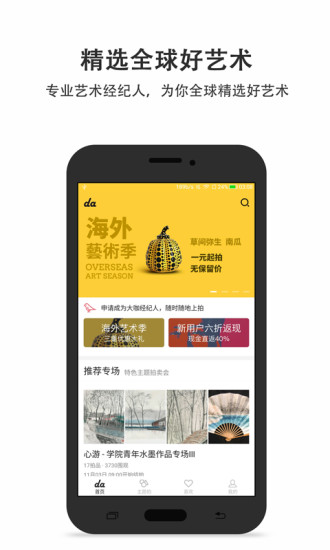 大咖拍卖客户端是一款专注于艺术收藏品拍卖的移动购物软件,为用户提供便捷、安全、专业的艺术品交易体验。在这里,您可以发现来自全球各地的珍贵艺术品,涵盖绘画、雕塑、古董、珠宝等多种收藏品类。无论您是资深收藏家还是艺术爱好者,都能在这里找到心仪的艺术珍品。
