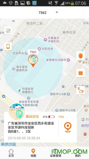 定位:APP可以查询设备的最后位置并在地图上显示出来,可以查询设备的实时位置,定位精度可达10米以内。