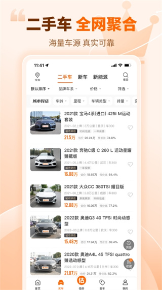 车300APP是一款专为二手车交易打造的智能工具,致力于为用户提供全面、精准的车辆信息服务。无论是个人买家还是行业从业者,都能通过该应用轻松获取车辆估值、维修记录、出险历史等关键数据。软件整合了车型识别、线下检测等实用功能,帮助用户在复杂的二手车市场中规避风险,做出最优决策。其简洁的界面设计和高效的数据分析能力,让二手车买卖过程更加透明、便捷。