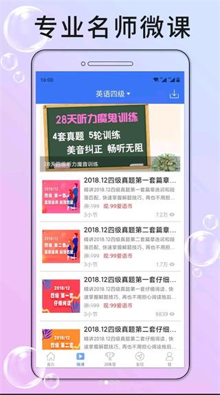 英语四级听力是一款专为大学生量身打造的智能备考软件,致力于帮助用户系统提升英语听力能力。该软件采用科学的教学方法,整合了历年四级考试真题及高质量模拟题,内容涵盖新闻播报、学术讲座、日常对话等多样化场景。通过AI智能评估系统,软件能够实时分析用户的听力弱点,并提供个性化的训练建议。独特的精听模式和变速播放功能,让用户可以根据自身水平调整训练强度。无论是零基础起步还是高分冲刺,这款软件都能提供专业有效的学习路径,帮助用户在四级听力考试中取得理想成绩。