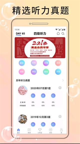 支持将整套练习资料下载到本地,包括音频、题目和解析,在没有网络连接的情况下也能持续学习,特别适合校园网络不稳定的使用场景。
