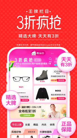 唯品会商城app是一款专为时尚达人打造的精品购物平台,汇聚全球知名品牌,以超值折扣满足你的品质生活需求。在这里,你可以轻松找到服饰、美妆、家居等全品类商品,每一件都经过严格筛选,确保正品保障。平台每日更新海量特惠商品,搭配智能推荐系统,让你不错过任何心仪好物。无论是日常购物还是节日囤货,唯品会都能提供便捷的一站式服务,更有会员专属福利等你来享,让每一次购物都成为享受。
