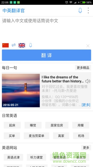 精心设计的翻译界面简洁明了,操作逻辑符合用户习惯,让中英翻译变得轻松愉快。软件还提供每日一句精品英语学习内容,帮助用户积累地道表达。