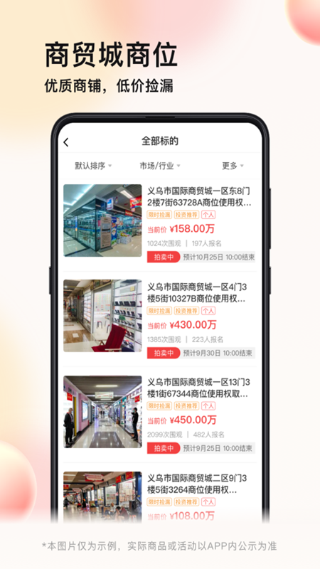 平台定期推出特价拍卖专场,包括一元起拍、限时特惠等多种活动形式。特别是义乌商贸城商铺等稀缺资源,经常以远低于市场价的价格起拍,为用户创造超值投资机会。