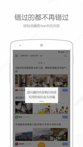 你可以按照自己的习惯为收藏内容分类,强大的全文搜索功能让你能快速找到想要的任何内容。搜索自己的收藏库比在百度上搜索还要高效,因为这里都是你精心挑选的内容。