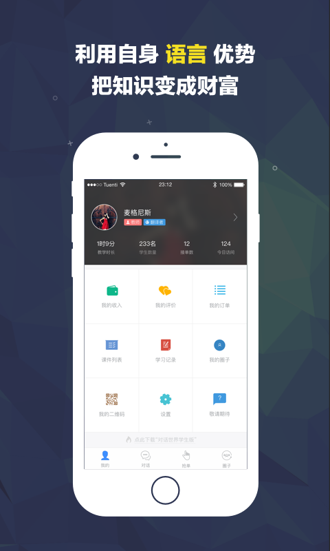 无论您是希望开展在线语言教学的专业教师,还是想要利用语言技能创造额外收入的自由职业者,《对话世界教师端》都能为您提供理想的平台。立即加入我们,开启您的全球语言服务之旅!