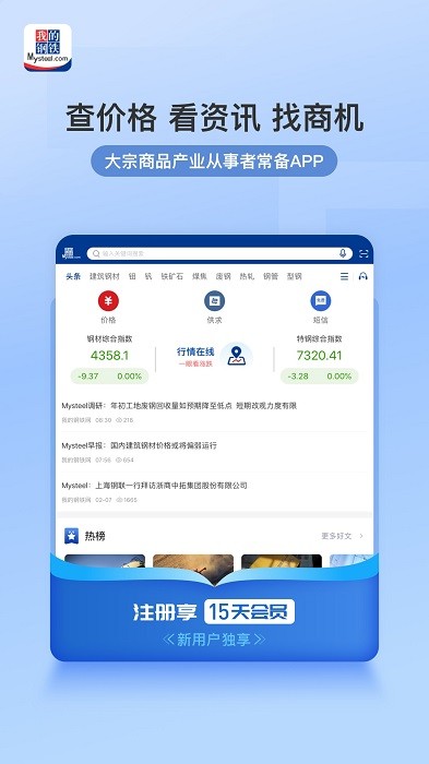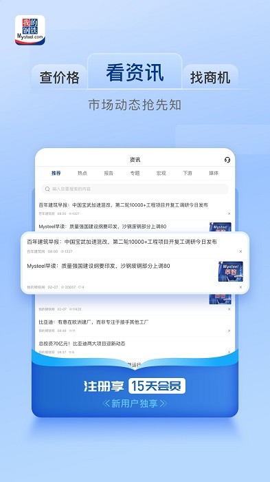 我的钢铁hd官方app版下载是一款专为钢铁行业从业者及关注者打造的专业信息服务平台,致力于为用户提供全方位、多角度的行业资讯与市场数据。作为行业领先的信息聚合平台,该软件整合了全国各地的钢铁市场动态,通过智能化的信息推送系统,帮助用户实时掌握行业脉搏,精准把握市场机遇。