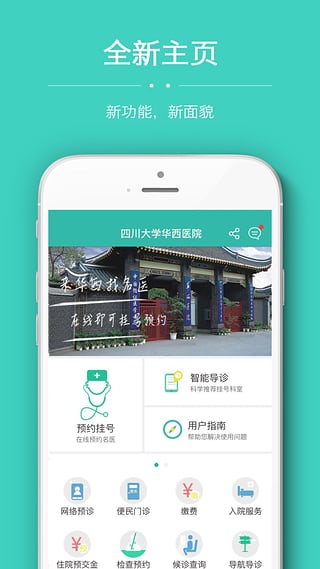 【智慧就医】:全面覆盖四川大学华西医院、华西第二医院、华西口腔医院、华西第四医院及华西各联盟医院的挂号预约、门诊缴费、住院预交金缴纳、检查报告查询等核心就医功能;